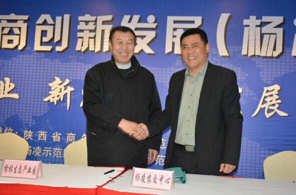 当日下午,在杨凌国际会展中心酒店多功能厅举办的“2016农业电商创新发展(杨凌)论坛”专场签约仪式上,杨凌农产品交易中心总经理常建平和榆林生态产业科技园主任张振中登台共同签署了战略合作协议。