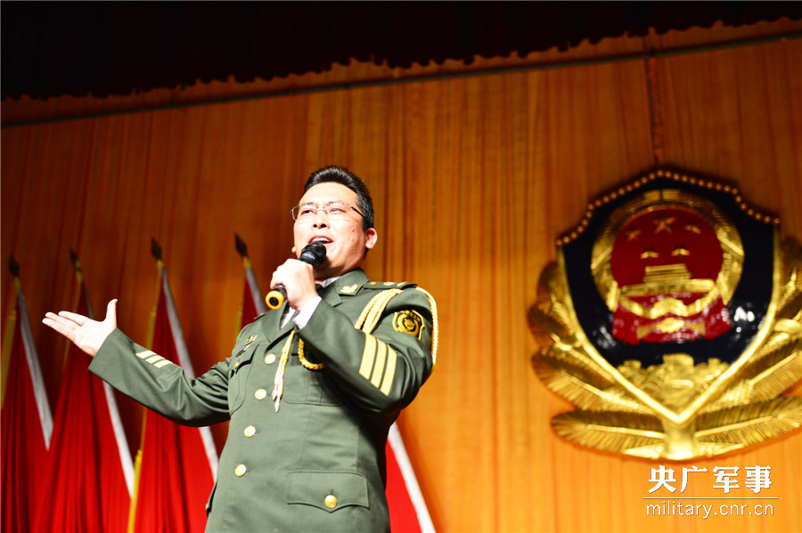 图为一名警官在激情演唱《强军战歌》。 王蒙 摄