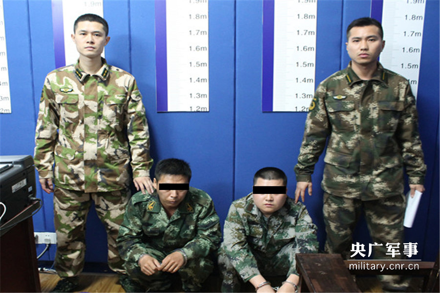 图为3月23日,两名身穿迷彩的假冒军人被边防武警抓获。