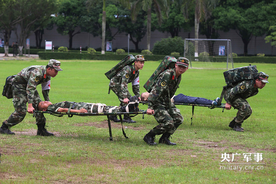 央广网广东6月15日消息(沈一鸣)后勤保障力就是战斗力,卫生员也是战斗员。6月15日,在深圳银湖山训练基地,驻守在粤港澳边海防一线的广东边防总队机动支队组织卫生队队员开展应急救护演练,检验和提升官兵处置突发事件时的快速救援能力。