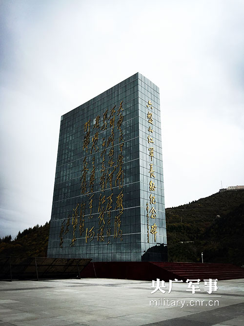 六盘山红军长征纪念碑。高26.8米,碑身长18米,宽4.5米。东侧镶有铜制毛泽东《清平乐·六盘山》手书;西侧镶有毛泽东《七律·长征》手书。徐凤佳 摄