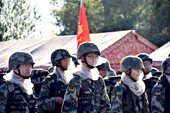 军旗猎猎,战舰云集。12日7时许,黄山舰经过四天的连续航行,顺利抵达南海某海域与其他20余艘参加海上联演的多国舰艇会合。黄山舰被编入第三组演习群,同组的还有新加坡“至高”号护卫舰、俄罗斯“瓦良格”号巡洋舰等八艘外军舰船,黄山舰居编队中心位置。演习科目包括旗语通信、海上意外相遇规则运用和灯光信号等内容。