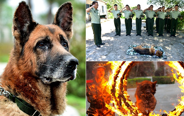 泪目!功勋犬去世 军人用最高礼节致敬