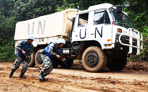 中国驻刚果(金)维和工兵分队组织防卫演练