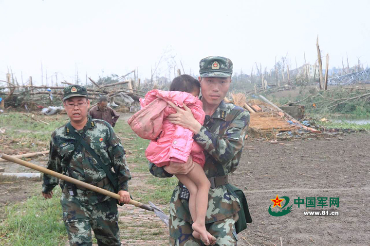 6月24日11时,武警江苏省总队盐城市支队阜宁县中队三班战士李浩天将戚桥村受灾群众背到安全地带。据现场官兵介绍,阜宁县陈良镇立新村和蔡河村受灾严重。截至记者发稿,武警救援官兵成功搜救群众53人,劝离危房群众21户,疏散群众100余人,抢通道路约1公里。(吴敏 杨吉祥)