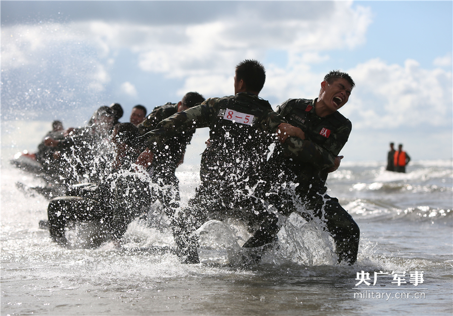 据了解,此次海滩特种训练是该支队开展“魔鬼周”训练的32个科目之一,在“魔鬼周”训练中,70余名特战队员人均负重30公斤,长途奔袭累计达350公里,全面锤炼部队反恐作战能力,练就一招制敌、出奇制胜的真本事、硬功夫。