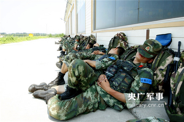 中午特战队员在户外休息,当时温度38度。姜润邈摄
