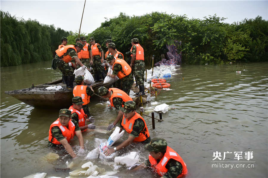 武警官兵通过“人船结合,双向进占”的战法封堵决口。