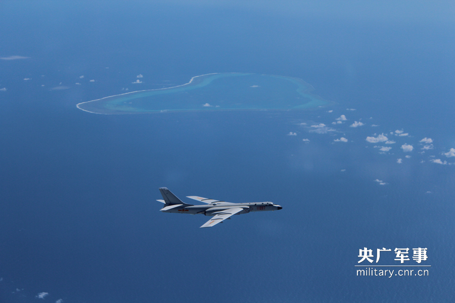 轰-6k战机在黄岩岛上空巡航。刘锐 摄