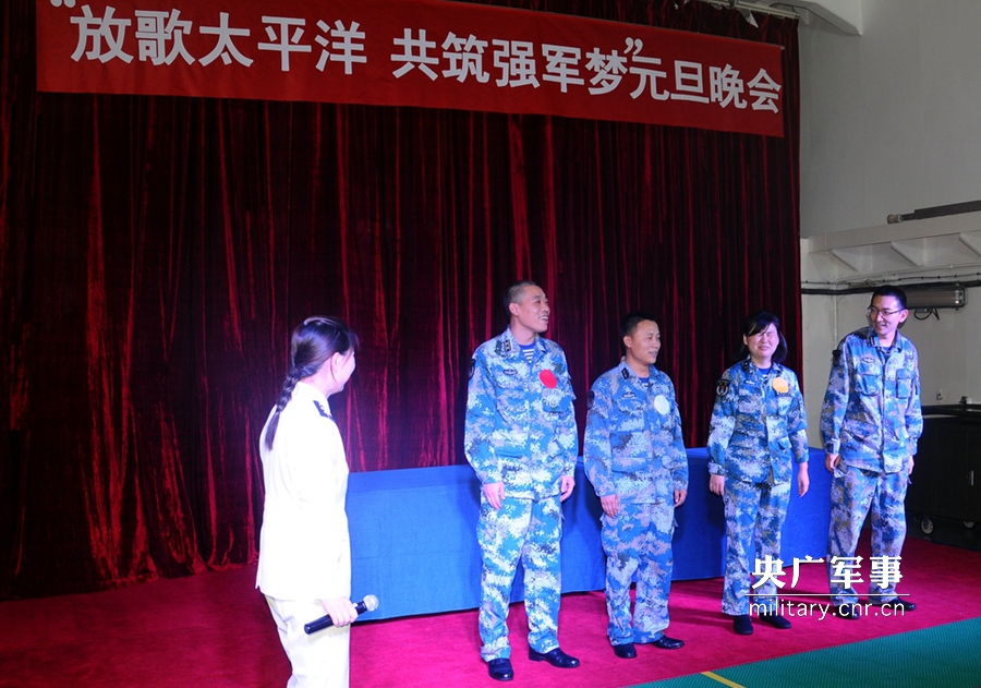 当地时间12月31日晚7时,中国海军舰艇编队综合补给舰太湖舰举行了“放歌太平洋,共筑强军梦”元旦文艺晚会。 李秀林 摄