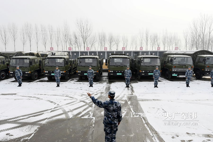 雪后,连长王根祥组织点验车辆并进行冬季行车安全教育。(汽车连提供)