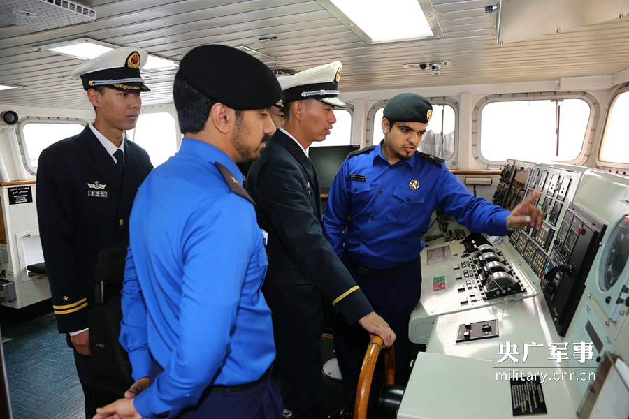 编队官兵参观卡塔尔舰艇。王长松 摄