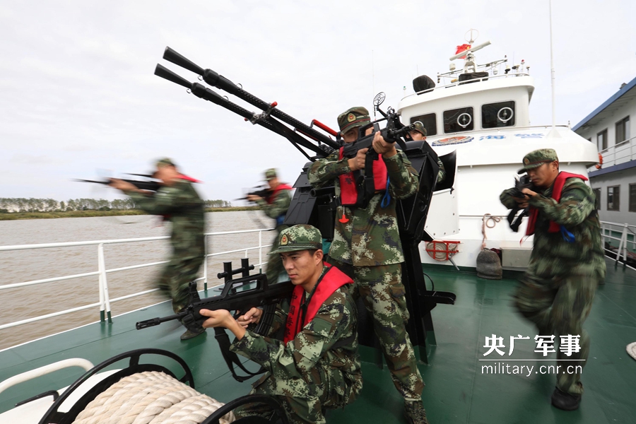 江苏海警某舰艇官兵正在进行战术演练。苏红锋 摄