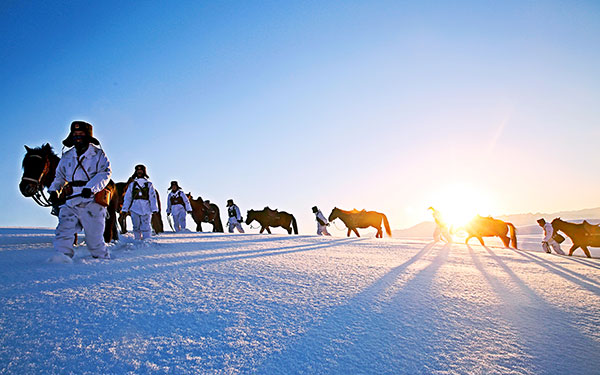 零下35℃ 边防巡逻兵骑马挂枪走边关