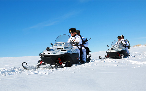 风雪边关,边防卫士踏雪巡逻守卫安宁