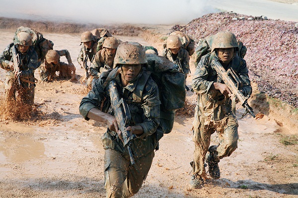 官兵们通过镜头给远方亲人送祝福。刘金桂 摄