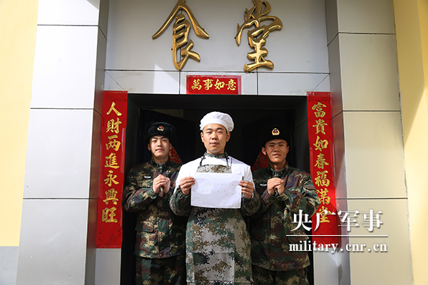 央广网2月18日消息 (陶涛 宋晓东 记者王浡)2月15日,在农历狗年来临之际,火箭军某团官兵欢聚一堂,喜迎中国年。按照中国人的传统习俗,过年要一家人团聚,贴春联、包饺子。但是,小家要回,大家也要守,为了让留守官兵度过一个愉快祥和的春节,该团组织大家亲自动手贴春联、包饺子,让年味浓起来,让心连起来。