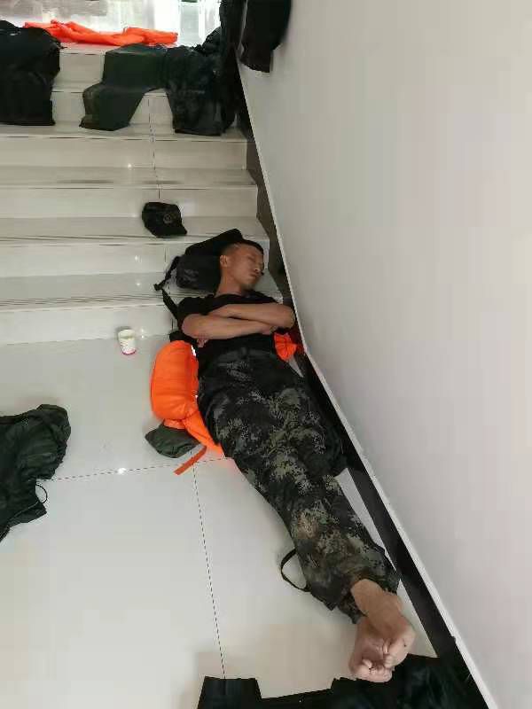 央广网7月21日消息 (江栋 汪炜 尹喜忠 常帅 张明博 黄国浩 孟凡军 谷向阳 李鹏)洪水汹涌,他们一直在水中奋战;抗洪紧急,他们只能席地而睡。今天,子弟兵在抗洪一线短暂休息的照片在网上广为传播,在网友们眼中,此时此刻,他们的睡姿是最美的图片。