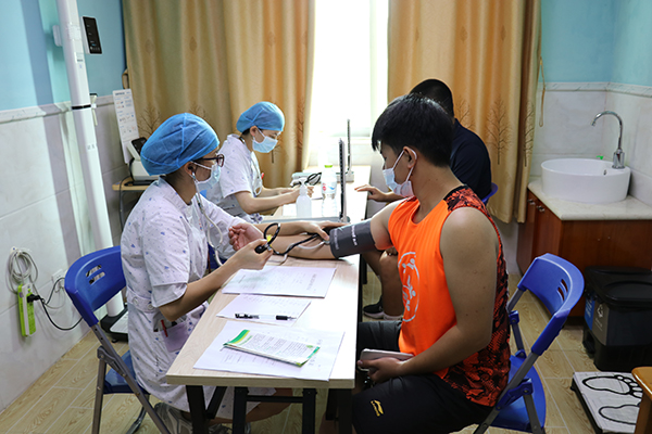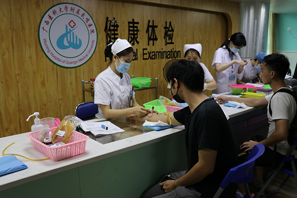 央广网8月9日消息(刘科 陆云龙)近日,广西南宁市武鸣区2021年秋季征兵体检总检工作在广西医科大学附属武鸣医院体检站全面展开,全城区的应征青年分批次进行体格检查。