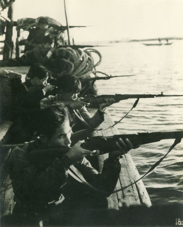 彭德才:我们的舰艇小,敌人的舰艇大,但是我们的速度比他们快,所以我们出发没多久,就把敌人的“章江”号包围起来了。我们4条艇排起来,一个艇是8个管,4条艇上是32个管,这样对着敌舰一起开火,这叫“打排炮”。