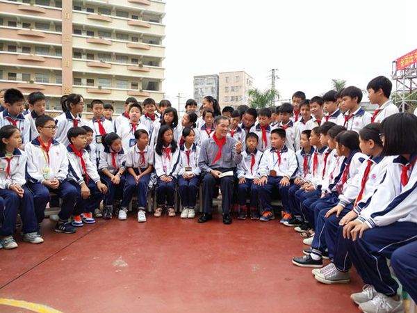 麦贤得给小学生讲述战斗故事