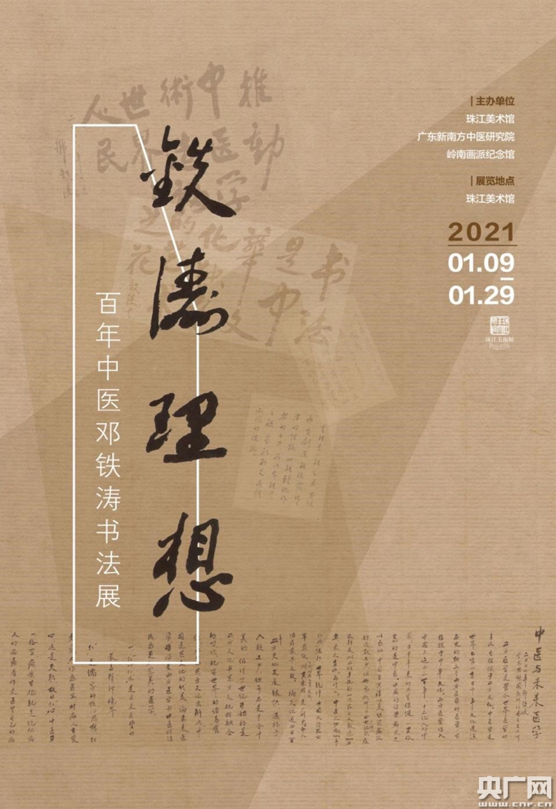央广网广州1月9日消息(记者张胜强)1月9日,“铁涛理想——百年中医邓铁涛书法展”在广州珠江美术馆开幕,本次展览由珠江美术馆、广东新南方中医研究院和岭南画派纪念馆共同主办,展览将持续至2021年1月29日。