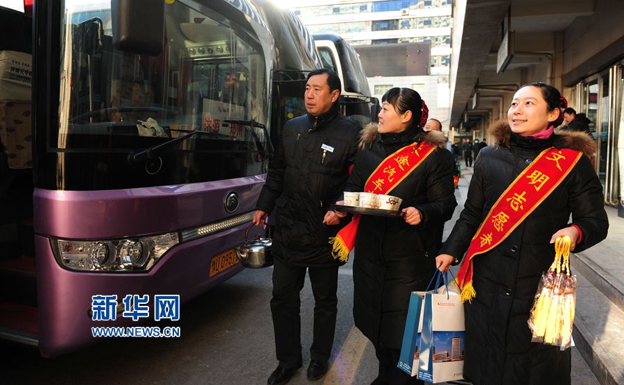 1月24日,郑州长途汽车中心站开展送温暖活动。
