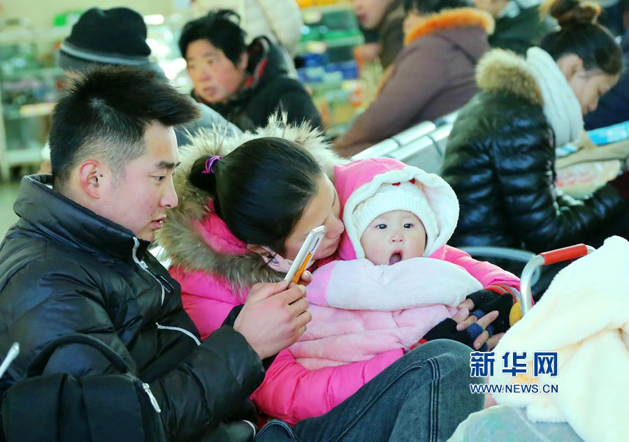 1月24日,一名小朋友在河南省平顶山西站候车。