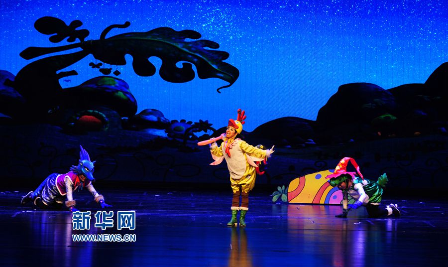 1月24日,演员在表演儿童剧《披上狼皮的羊》。