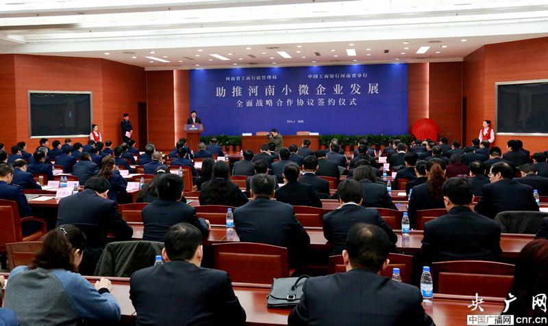 对于此次签约合作的战略意义、发展前景,河南省工商局、省工商银行领导均信心百倍、满怀希望。河南省工商局局长马林青在致辞中表示,省工商局作为省政府市场监管的重要部门,肩负着市场准入、规范市场发展、维持经济秩序、保护消费者权益的重要职责,监管服务阵地延伸到1577个基层工商所,掌握全省357.4万户市场主体的登记监管数据信息,在助推小微企业发展、服务“双创”活动中起着十分重要的作用。在今后的战略合作中,要精于服务,当好小微企业的服务员;善于协作,当好小微企业的联络员;勤于吆喝,当好小微企业的宣传员;严于要求,当好小企业的勤务员,用百倍的热情为扶持小微企业发展,助推河南经济腾飞做出积极的贡献。