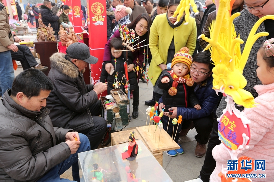 安阳市举办的2016猴年新春非遗、民俗文化系列产品展示活动,从正月初三开始,为期12天。活动期间,每天都将为市民展示出琳琅满目的民间手工艺品,惟妙惟肖的民俗表演,飘香四溢的特色美食等。新华网发(毕兴世 摄)