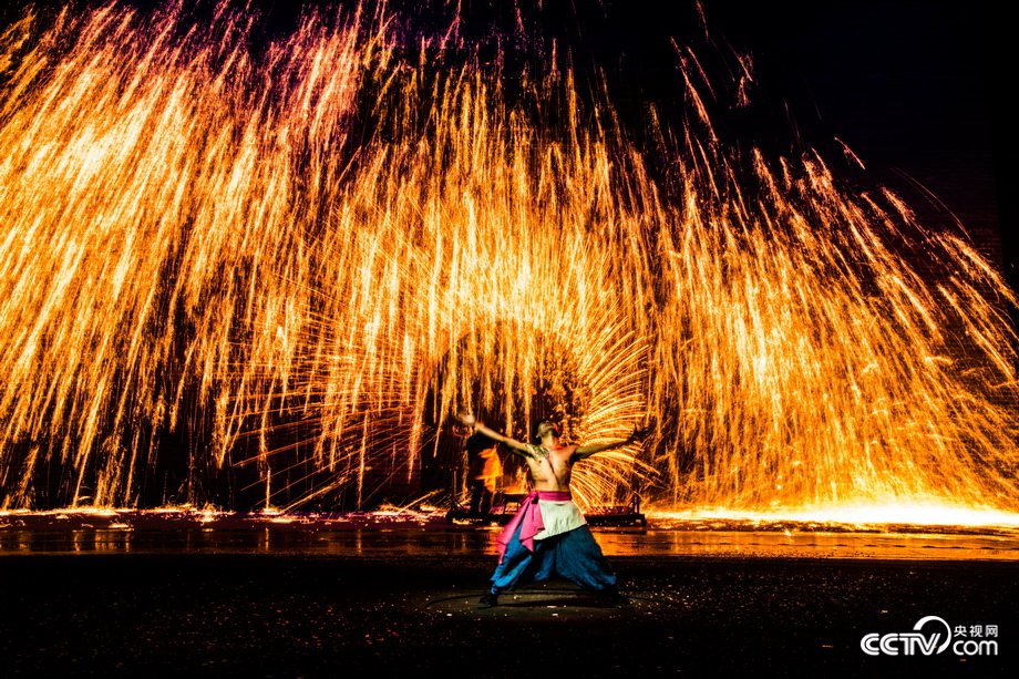 “打树花”场面震撼 熔化铁水泼墙