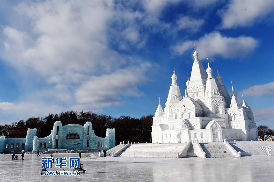 央广网河南分网消息 2月14日,游客在雪博会园区内的“冰雪之冠”附近游玩。受近日气温升高等因素影响,作为目前世界最高的雪塑建筑,位于哈尔滨太阳岛雪博会园区的“冰雪之冠”,已从建造之初的51米高,“变矮”了5米左右。新华社记者 王建威 摄