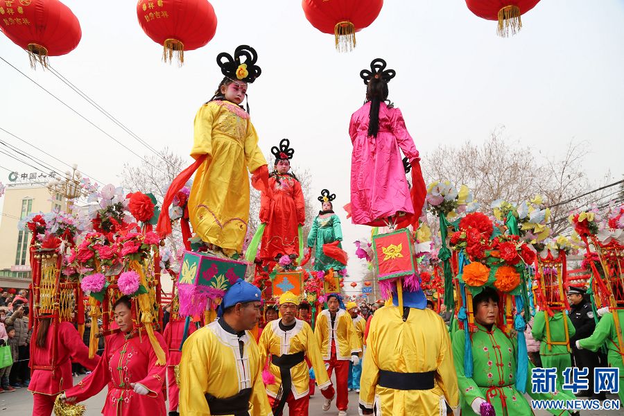 央广网河南分网消息 当日是农历正月十六,河南省温县赵堡镇赵堡村民间艺人进城表演“背桩行水”传统民俗节目庆新春。