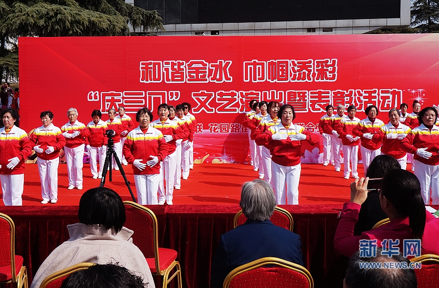 央广网河南分网消息 在“三八”妇女节即将到来之际,3月3日下午,郑州市金水区妇联与花园路街道办事处在郑州紫荆山公园联合举办“和谐金水 巾帼添彩”文艺演出暨表彰活动,庆祝“三八”国际妇女节的到来。
