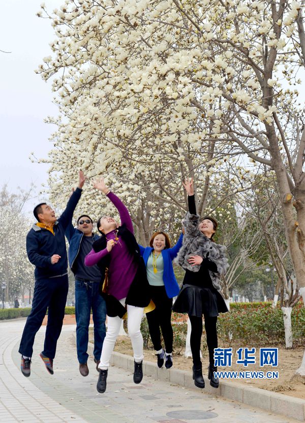 央广网河南分网消息 日前,河南省夏邑县在公园、广场、游园、道旁、绿化带里种植玉兰进入盛花期,吸引大批市民前往赏花游玩。玉兰花是该县的县花,眼下,全县种植开花可观赏的玉兰树2万多棵。新华网发(苗育才 摄)