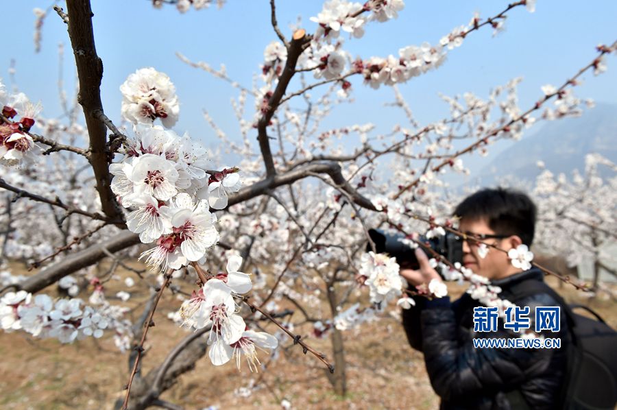 3月15日,春回大地,万物复苏,沁阳市紫陵镇紫陵村万亩果园里的杏花纷纷绽放,吸引众多游人、摄友驻足观赏。 新华网发(李亚锋 杨志强 摄)