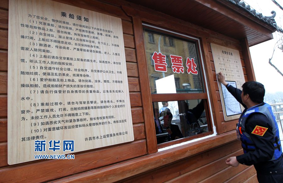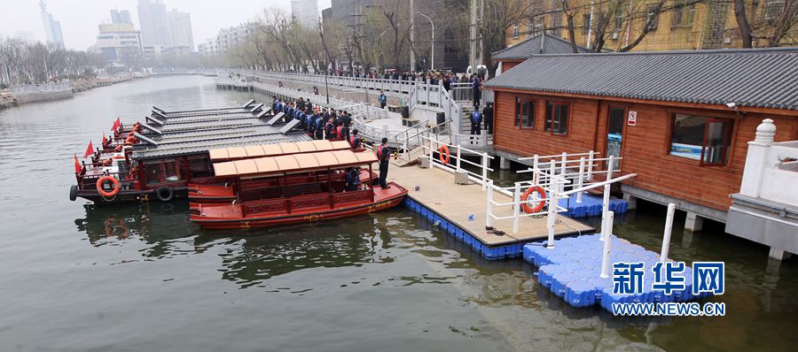 3月15日,河南许昌,众多市民关注护城河通船。
