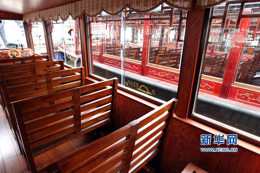 3月15日,河南许昌,水上巴士(公交)船舱局部。