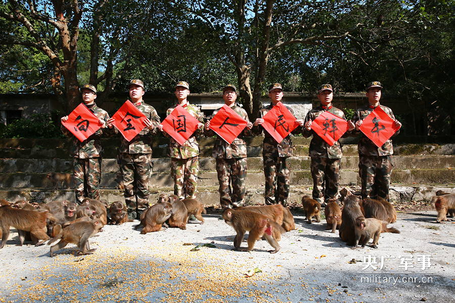 央广网珠海2月6日消息(周捷) 2月4日,在猴年来临之际,驻守在珠海最偏远海岛担杆岛上的广东珠海边防支队驻岛官兵,给他们守护着的猕猴们带来了鲜美的新春礼物,与猕猴们恭贺新春之喜。