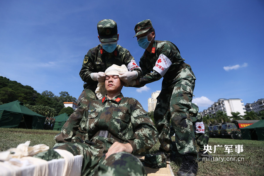 图为医疗人员对伤员伤口进行快速包扎。陈志荣 摄