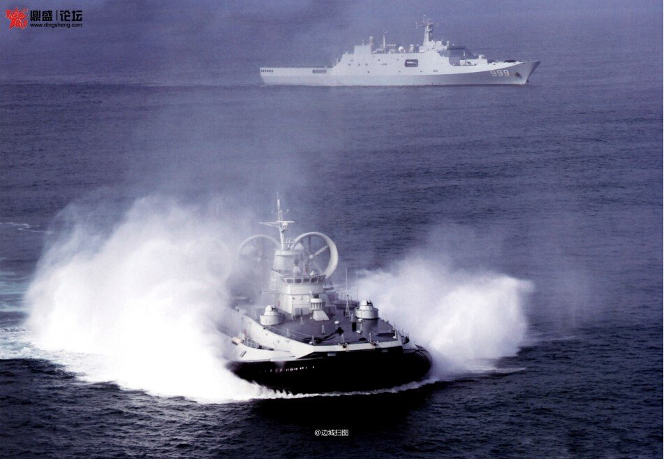 近日,网络上出现了中国海军“野牛”气垫登陆船与999井冈山号船坞登陆舰进行联合演练的照片,两艘巨舰在海面上联合作战,场面壮观。(扫图鸣谢:鼎盛军事 边城)