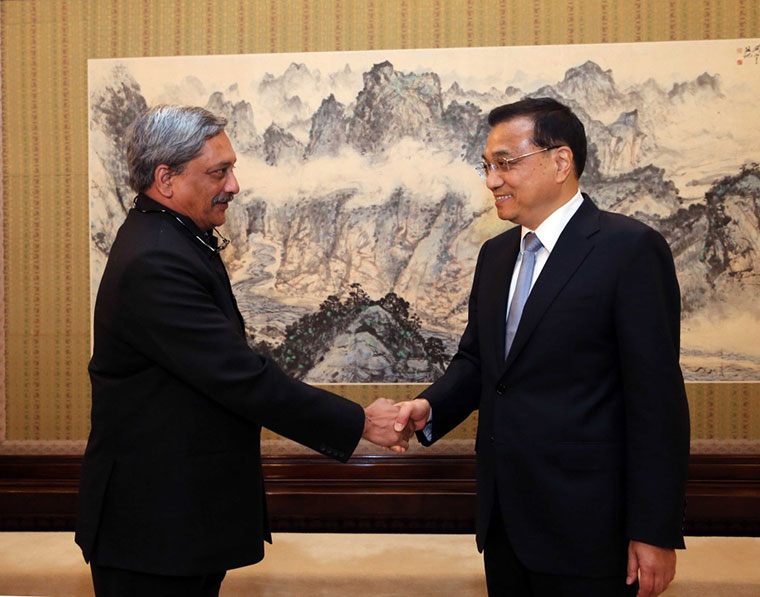 4月19日,国务院总理李克强在北京中南海紫光阁会见印度国防部长帕里卡尔。新华社记者刘卫兵摄