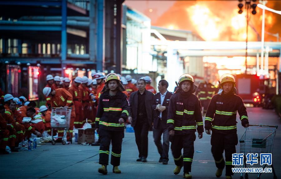 4月22日18时许,在江苏省靖江市新港园区江苏德桥仓储有限公司,消防官兵在轮换休息。记者从江苏省消防总队获悉,1名消防战士在靖江危化品仓储大火中牺牲。牺牲的消防战士名为朱军军,是泰州市公安局消防支队靖江中队消防战士。据悉,在事故现场为了保证灭火供水不间断、掩护战友撤退,朱军军延误了撤离时间,经送医院抢救无效牺牲,年仅26岁。新华社记者 李响 摄