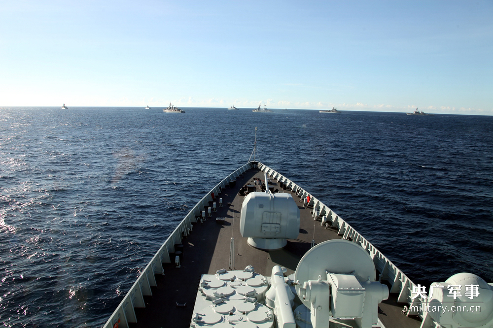 5月5日,东盟“10+8”海上实兵演练展开。图为兰州舰正在进行海上编队航行。陶宏祥 摄