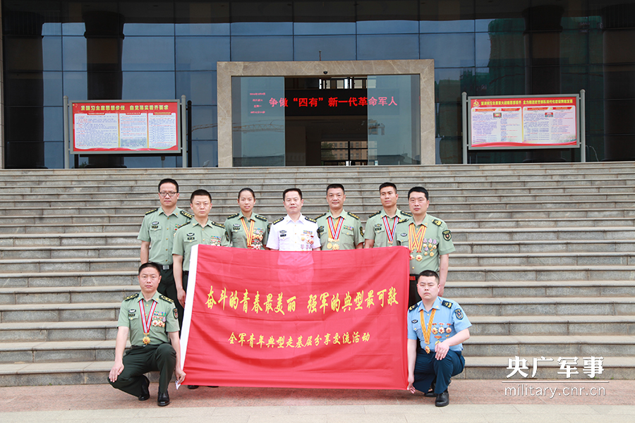 “奋斗的青春最美丽、强军的典型最可爱”全军青年典型分享交流活动在武警南宁支队开展。图为青年典型与武警部队十大忠诚卫士、武警广西总队来宾支队政委何方礼合影留念。 李晓波 摄