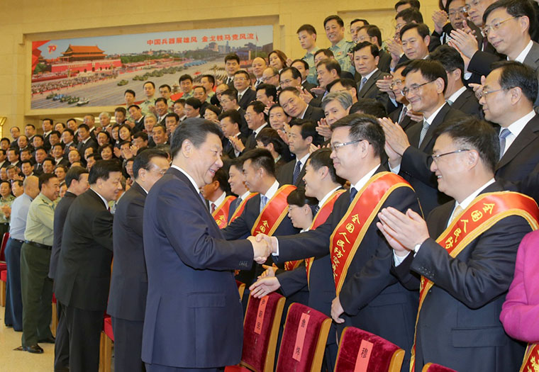 5月13日,党和国家领导人习近平、李克强、刘云山、张高丽等在北京会见第七次全国人民防空会议代表。 新华社记者 李刚 摄