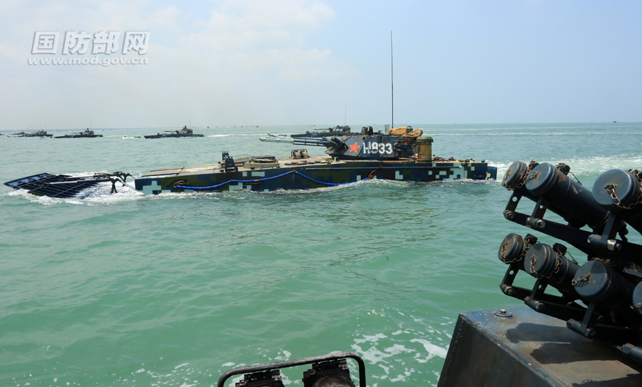 5月11日,海军陆战队某旅组织两栖装甲编队进行抢滩登陆训练。进入5月,南粤沿海开始炎热起来,该部按照实战要求,组织部队进行海上驾驶、通信、射击等课目训练,锤炼部队过硬的两栖作战能力。