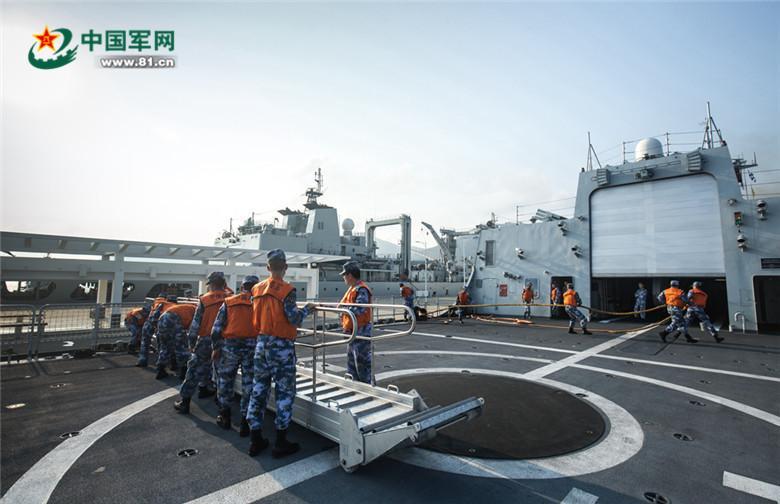 07:00—08:00,“着装整齐、收回跳板、解除缆绳、准备离码头!”随着一连串口令和主机启动传来的轰鸣,伴随舰尾泛起的阵阵浪花,一艘艘战舰驶离码头,拉开了编队远海训练的序幕。