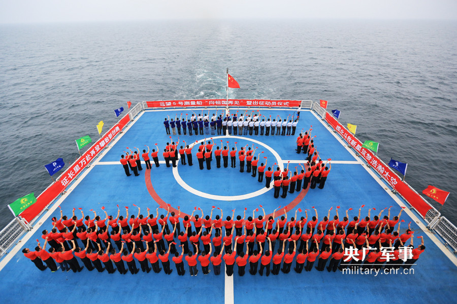 远望5号船的船员们告诉记者,每当远离祖国母亲的怀抱,挥舞鲜艳的五星红旗的刹那间,一股热血在胸中涌动,豪迈之情油然而生。向祖国再见,是船员们对祖国的郑重告别,更是他们向祖国许下的铮铮诺言。